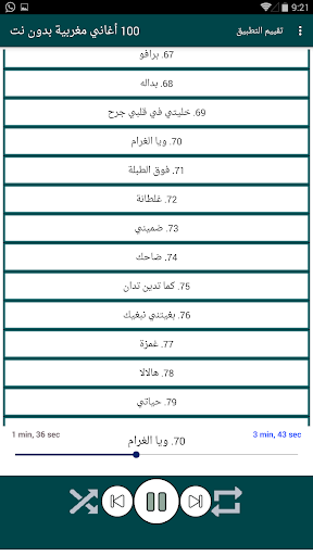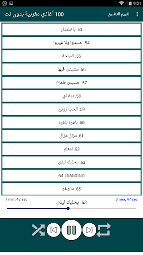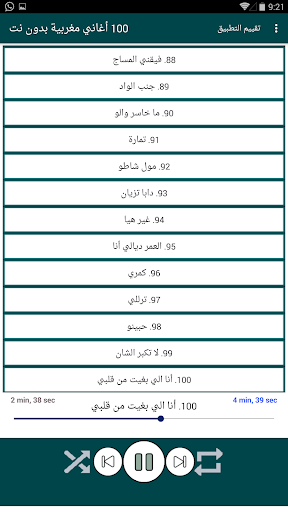 والمزيد من الاغاني المغربية الاكثر شهرة. يمكنك الان الاستماع الى الاغاني العربية والفن العربي و المغربي في تطبيق واحد وبدون انترنت مع جميع الاغاني الجديدة بدون نت وبحجم صغير