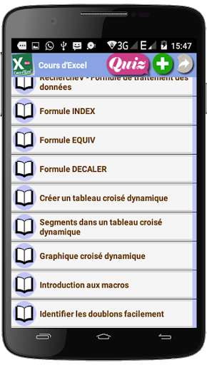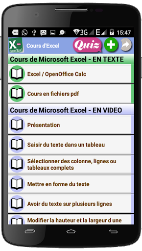 Cette application gratuite est une Bibliothèque dynamique alimentée par les meilleurs sites éducatifs français spécialisés dans des cours d'Excel.