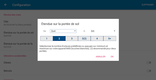 ✔ Choix d'activer ou non des altérations accidentelles simples : aucun accident, dièses, bémols, dièses bémols.