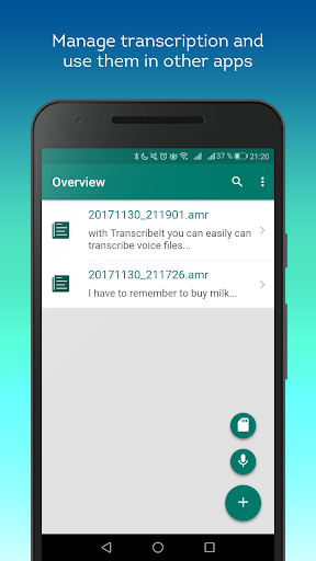 Pour ceux qui aiment aussi avoir leurs données de parole enregistrées en langue écrite, Transcrits propose une solution simple et puissante. Il suffit de choisir les fichiers que vous souhaitez convertir en texte et de courte durée recevoir les résultats. Bien sûr, vous pouvez ensuite utiliser le texte de votre application préférée, l'envoyer par courrier ou quoi d'autre que vous devez faire avec cela.