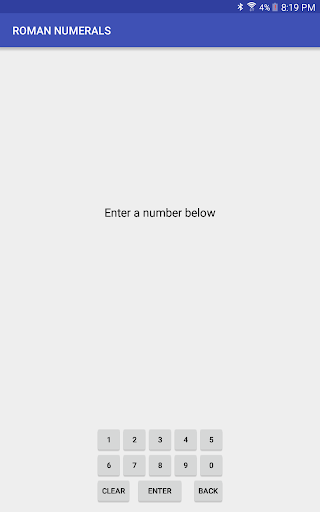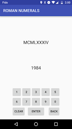 Cette application prend des chiffres avec des chiffres occidentaux et convertit ceux des nombres romains.Un large éventail de nombres sont pris en charge, avec de grands numéros de nombres ayant une macron (surligne) pour montrer qu'ils valent 1 000 fois plus!