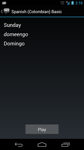 3. On the phrase detail page, the phrase itself is shown alongside its pronunciation and the equivalent English phrase. Press the Play button to hear the audio pronunciation by a native speaker.