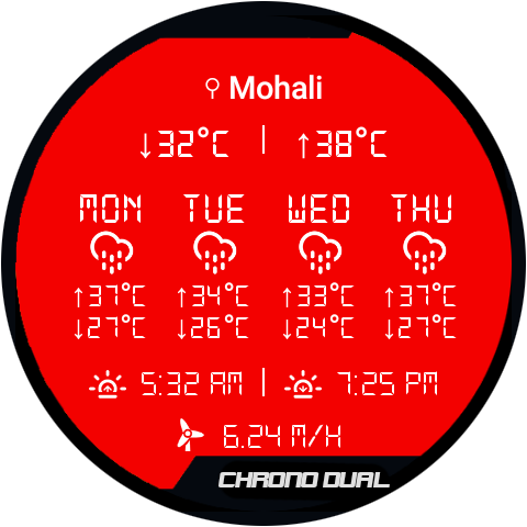 Chrono Dual est entièrement compatible avec toutes les résolutions de montres d'usure Android.