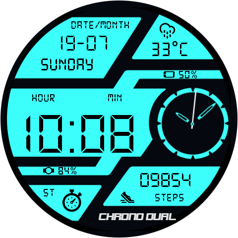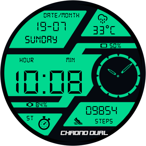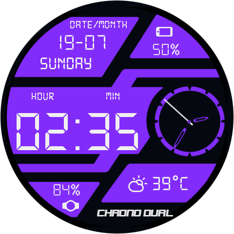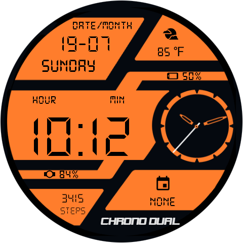 Chrono Dual Watch Face à une face de montre double de style unique pour les téléphones d'usure d'usure et d'horloge.