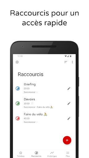 Timebox Timer vous permet de démarrer un minuteur en un instant. Lancez rapidement le minuteur avec un simple coup de balai. La présentation claire et simple vous aide à garder le temps restant en vue.
