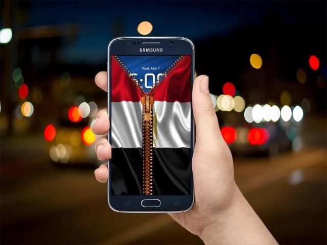 Zipper lock the phone screen and show in the background knowledge of the Arab Republic of Egypt Program Support your country and your belongings showed Pthmelc lock screen with the knowledge of Egypt