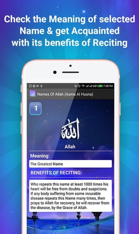 भगवान के नाम और अर्थ अनुप्रयोग, कोई इंटरनेट कनेक्शन अपनी पहली डाउनलोड करने के बाद इस इस्लामी एप्लिकेशन काम करने की जरूरत के ऑफ़लाइन कार्य इस्लामी आवेदन।