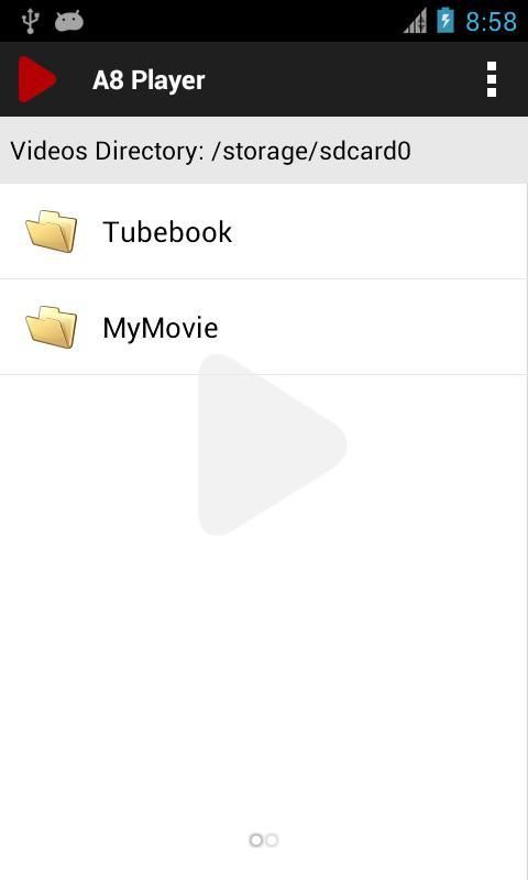 ए 8 वीडियो प्लेयर Android के लिए एक वीडियो प्लेयर है। यह सबसे स्वरूपों का समर्थन करता है MP4 की तरह, एमपीईजी, AVI, RMVB, FLV, MP4, 3GP, MKV, MOV, आदि यह 1080 पी एचडी वीडियो अपने एंड्रॉयड फोन या टैबलेट से खेल सकते हैं।