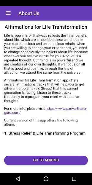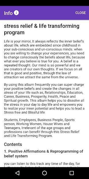 Affirmations for Life Transformation app offers several affirmations tracks that will help you target different problems (ex: Stress) that this current generation is facing. Listen to these tracks frequently to reprogram your mind with positive thoughts.