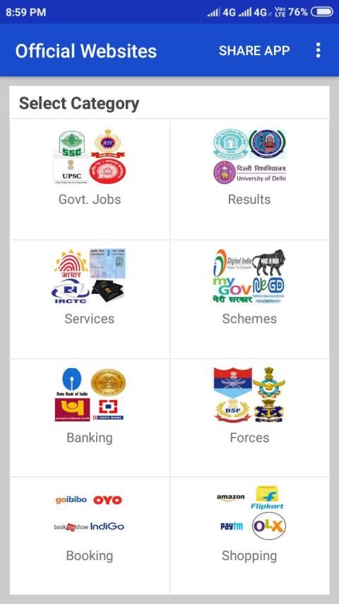 UPSC, SERVICES, SHOPPING, BANKING etc. In this app all types of result link available like CBSE, HBSE ,DSSB, SSC, HSSC,UNIVERSITY, SCHOOL, COLLEGE etc. This app is very usefull for all people, they can check result easily by one click.