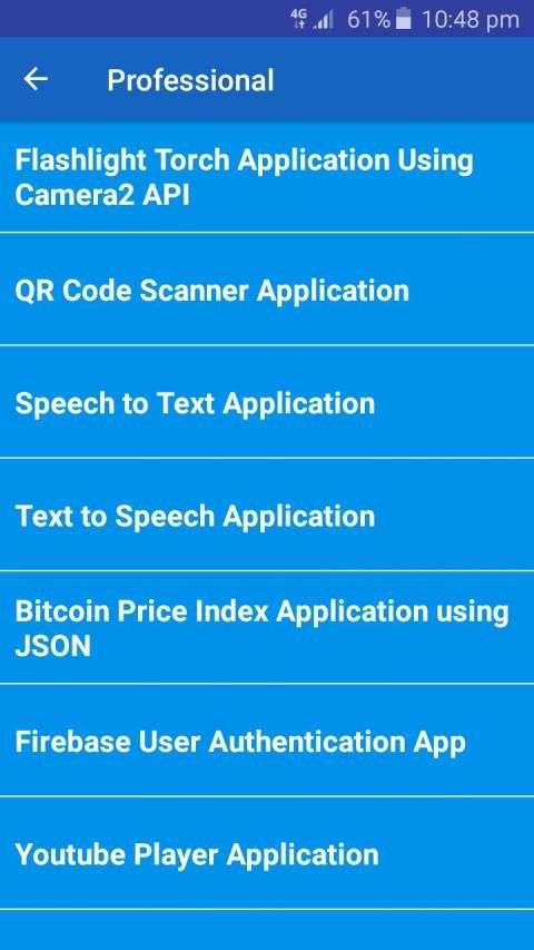 In the Professional Section, you will learn how to create some professional Android Apps. We will keep adding new apps to this section from time to time.