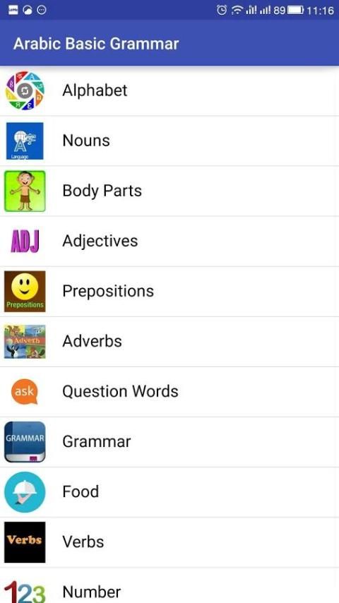 व्याकरण दृश्य पर अरबी गैर देशी सीखने के लिए बनाया गया एक app, इस विषय पर क्षुधा की सबसे यात्रा के उद्देश्य के लिए है। भाषाओं प्रकार की एक श्रृंखला के लिए समय-समय पर शुरू किया जाएगा। यह अरबी शिक्षार्थी या कोई भी इच्छुक पार्टियों को प्रोत्साहित करने के लिए एक app के प्रभार से मुक्त है। यह मैं क्षुधा अब और बाद में प्रकाशित करने के लिए एकमात्र उद्देश्य है। एप्लिकेशन को विभिन्न वर्गों में जो वर्गीकृत और व्यवस्थित शब्द, वाक्यांश और वाक्य को दिखाया जाता है में विभाजित है। इस से फोन में एक app scenarios.With कई अनुरूप कर दिया है, यह साफ हो सकता है, उपयोगकर्ता किसी भी समय और हर जगह पर सीख सकते हैं। सामग्री विभिन्न व्याकरण से भरा है और अलग-अलग स्तर के लिए बनाया गया है, यह वाक्य है जो आप में सुधार और सतत अभ्यास के माध्यम से भाषा शक्ति को मजबूत करते हैं शामिल थे। अधिक पढ़ने और सुनने के ज्ञान और भाषा की कमान वृद्धि हुई है। कोई एप्लिकेशन सीखने के लिए एक सुविधाजनक तरीका प्रदान की है।