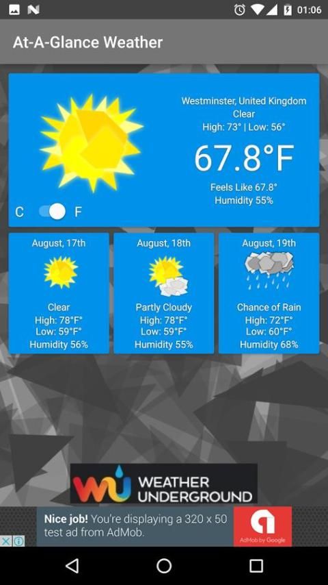 All high quality mobile apps are available for free download. 20,000+ users downloaded At-A-Glance Weather latest version on 9Apps for free every week! It has been a popular app for a long time. This hot app was released on 2016-08-26. Get the latest version now!