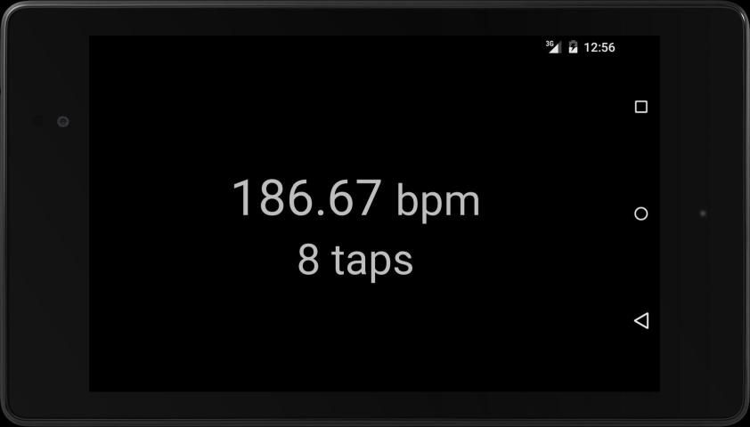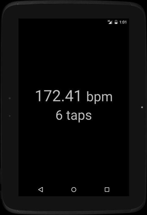 Tap anywhere on the screen every beat to obtain the beats per minute (BPM) of a song. Pause for 2 seconds to reset.