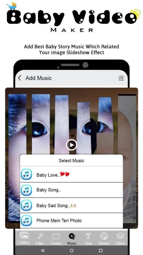 Baby Video Maker for create a video in slide show style with your photos, music and frames.Baby Video Maker With Music app helps you to create Image Slide-show from your mobile in seconds, along with slide time, frames and filter effects. Create beautiful Music Slideshow and share with friends and family for best occasions in life.