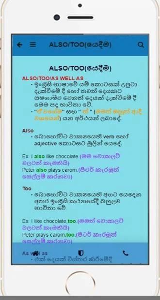 यह एक बहुत ही सरल ऐप है जिसका उपयोग कोई भी कर सकता है। इस ऐप में शुरुआत के लिए अंग्रेजी की बहुत मूल बातें शामिल हैं। जैसे व्याकरण, गीत, कविता, निबंध आदि। उपयोगकर्ता की बेहतर सुविधा के लिए सभी डेटा सिंहल भाषा में प्रस्तुत किए जाते हैं।