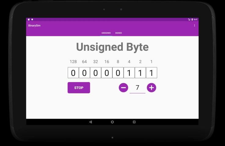 बाइनरी सिम एक बाइनरी सिम्युलेटर, एक सहभागी तरीके से बाइनरी सिस्टम सीखने के लिए एक उपकरण है।