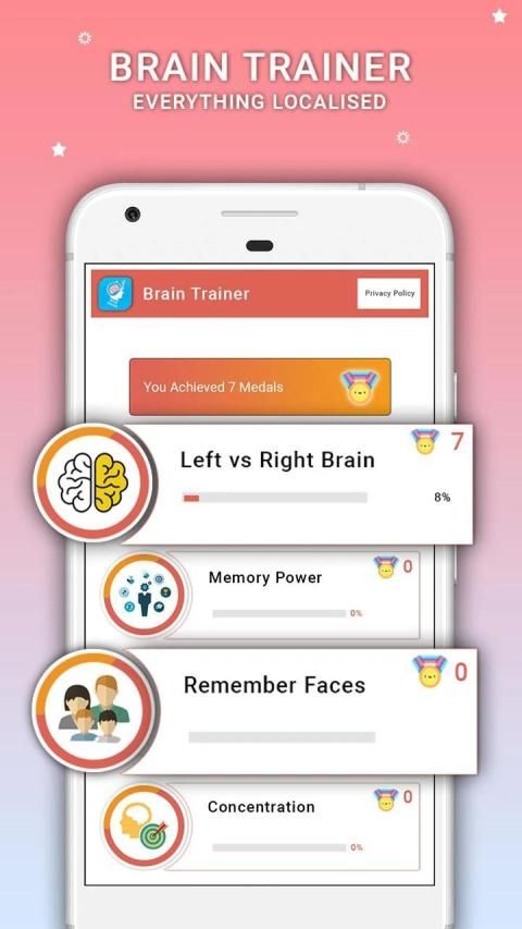 - Brain Trainer's Each Level Tests Your Skills and Abilities to Their Peak. After Each Level Complete, Your Next Level has been Unlocked. Every Level is Designed to Help you Improve Your Skills, Memory to Sharpen Your Mind Wtih This Addictive Game.