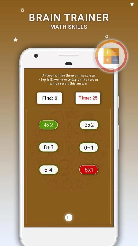 - In The Math Skill, Addition, Substraction, Multiplication and Division Numbers Displayed In The Screen. You have to click of the Screen With Right Answer.