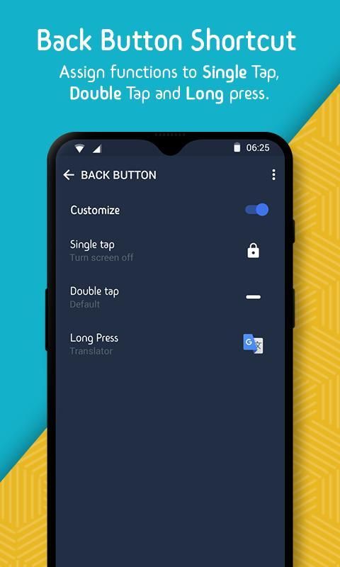 Button Mapper lets you customize your phone the way you like. You can customize single tap , double tap or long press of following buttons: