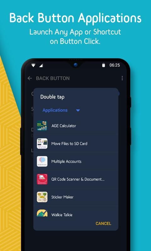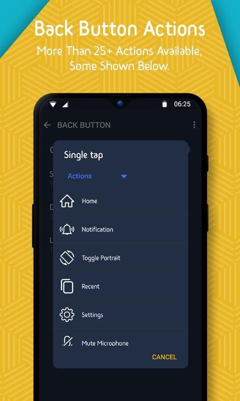 - Assign Back action to any button i.e volume up, volume down or recent button
