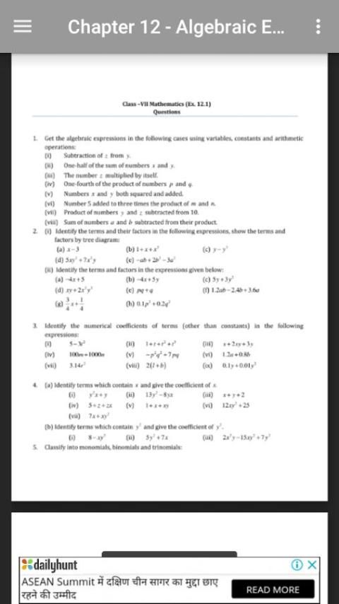 ✠ अध्याय 12 - बीजीय एक्सप्रेशंस