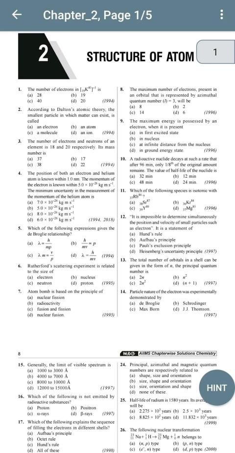 26 years AIIMS Chapter wise solutions - Chemistry is a chapter wise question bank having questions from past 26 years AIIMS Biology. This include questions of 2019 AIIMS and Chapter wise AIIMS previous year questions of last 26 years’ (1994-2019) with detailed answers for easy and clear understanding of the AIIMS Exam pattern.