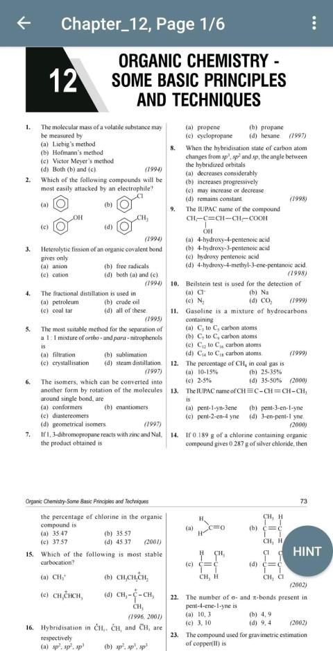 सामग्री की ceptsटेबल: 01. रसायन विज्ञान की कुछ बुनियादी अवधारणाएँ, 02. एटम की संरचना, 03। गुणों में तत्वों और आवधिकता का वर्गीकरण, 04। रासायनिक संबंध और आणविक संरचना, 05। स्टेट्स ऑफ़ मैटर (विशाल और तरल पदार्थ), 06। ऊष्मप्रवैगिकी, 07. संतुलन, 08. रेडॉक्स प्रतिक्रियाएं, 09. हाइड्रोजन, 10. एस-ब्लॉक तत्व, 11. पी-ब्लॉक तत्व (समूह, 13 और, 14), 12. कार्बनिक रसायन - कुछ बुनियादी सिद्धांत और तकनीक, 13. हाइड्रोकार्बन, 14. पर्यावरणीय रसायन विज्ञान, 15. ठोस अवस्था, 16. समाधान, 17. इलेक्ट्रोकेमिस्ट्री, 18. रासायनिक काइनेटिक्स, 19. भूतल रसायन विज्ञान, 20. तत्वों के सामान्य सिद्धांत और प्रक्रियाएं, 21. पी-ब्लॉक तत्व (समूह, 15 से 18), 22. डी- और एफ-ब्लॉक एलिमेंट्स, 23. समन्वय यौगिक, 24. हेलोकेनल्स और हेलोएरेनेस, 25. अल्कोहल, फेनोल्स और इथर, 26. एल्डिहाइड, केटोन्स और कार्बोक्जिलिक एसिड, 27। कार्बनिक यौगिक युक्त नाइट्रोजन, 28. बायोमोलेक्यूलस, 29. पॉलिमर, 30. एवरीडे लाइफ में रसायन
