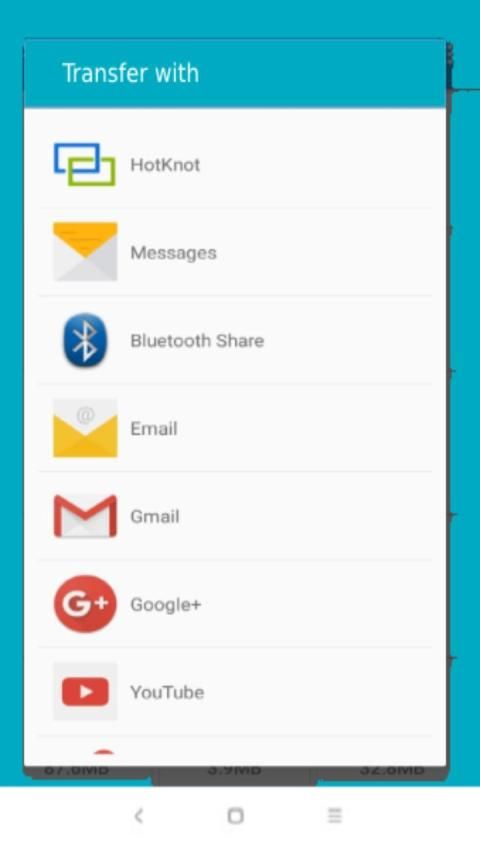 सीएम ट्रांसफर, ब्लूटूथ के माध्यम से आसान शेयर फाइल्स, एसएमएस के जरिए शेयर फाइल्स, ईमेल के जरिए फाइल शेयर करना और अन्य प्लेटफॉर्म जो आप ड्रॉपडाउन मेनू में देखेंगे, जैसे ही आप “ट्रांसफर एपीके” पर टैप करेंगे।