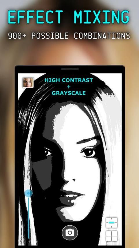 यह एप्लिकेशन क्योंकि वास्तविक समय में दो प्रभाव या फिल्टर मिक्स करने के लिए अपनी क्षमता का अनूठा है। उदाहरण के लिए आप एक दर्पण प्रभाव या एक उच्च विपरीत रेट्रो प्रभाव का एक स्केल फिल्टर मिश्रण कर सकते हैं! app की तुलना में अधिक प्रदान करता है