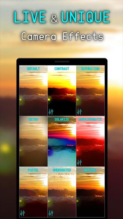 कैमरा प्रभाव मिक्सर अद्वितीय वास्तविक समय प्रभाव और फिल्टर की एक बड़ी राशि के साथ एक नया कैमरा app है!