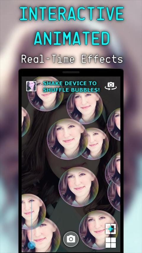 कुछ प्रभाव एनिमेटेड हैं या यहां तक कि इंटरैक्टिव! आप अपने डिवाइस हिला है, तो उदाहरण के लिए बुलबुला प्रभाव में बुलबुले तेजी से कदम होगा।