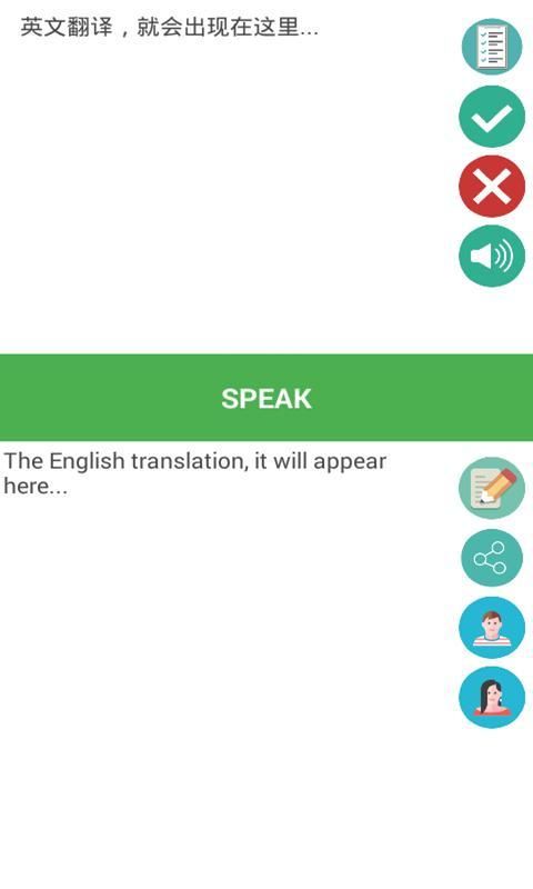 अनुवाद अंग्रेजी के लिए चीनी शब्द / वाक्य और 1-2-3 के रूप में आसान के रूप में चीनी के लिए अपने देशी भाषाओं का अनुवाद करें। कम सीखने की अवस्था के साथ अपने चीनी बोल कौशल में सुधार। और, यदि आप एक शर्मीली व्यक्ति हैं, एप्लिकेशन बात करते हैं आप के लिए करते हैं।
