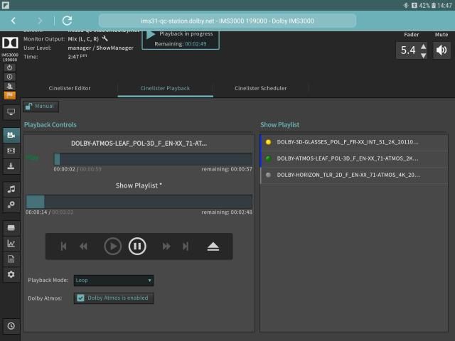 Cinema Server Control lets you use your Android tablet to give you wireless access and control of your Dolby Integrated Media Server IMS3000.