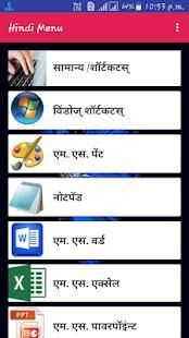 का शॉर्टकट कुंजी अंग्रेजी और हिंद भाषा श्रेणियाँ।