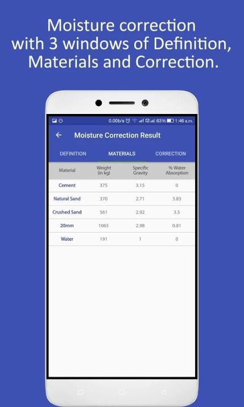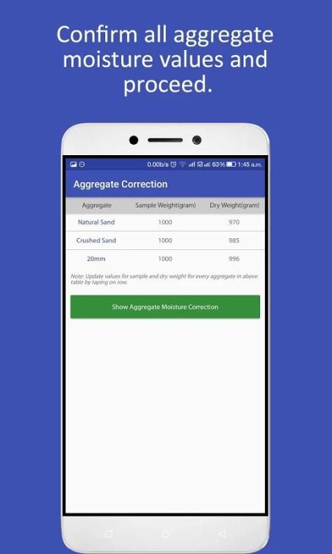 फिर आप को दिखाने सही तौल बटन क्लिक कर सकते हैं वास्तविक को सही मिश्रण है जो आप अपने वास्तविक कंक्रीटिंग गतिविधि के लिए उपयोग कर सकते हैं पाने के लिए।