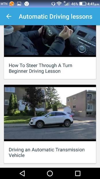 - Driving lessons with basic videos of how to drive a manual and automatic car and driving rules.