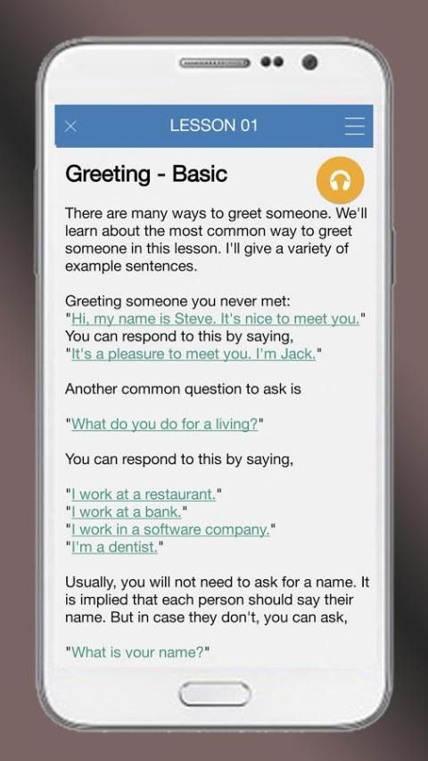 अंग्रेजी बोलते हुए नियमित रूप से 6 बड़े विषयों, 284 सबक और 2000 audios से अधिक होता है।