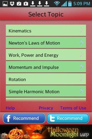 एप्लिकेशन को आप सीखते हैं और एक बहुत ही सरल और उपयोगकर्ता के अनुकूल तरीके में हाई स्कूल और कॉलेज के भौतिकी अवधारणाओं की समीक्षा के लिए अनुमति देता है. एप्लिकेशन का "जानें" मोड में आप "अवधारणा पाठ" की समीक्षा, "अवधारणाओं" बटन पर क्लिक करें और फिर आप बस की समीक्षा की है कि भौतिकी की अवधारणा से संबंधित एकाधिक पसंद सवालों के जवाब.