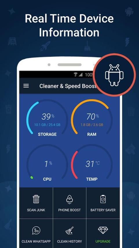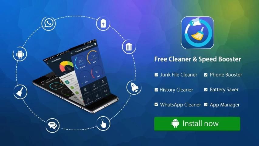 अपने स्मार्टफोन नए तरह चला रहे हैं। फ्री क्लीनर और स्पीड बूस्टर इसकी अधिकतम प्रदर्शन पर चलाने के लिए अपने स्मार्टफोन का अनुकूलन। फ्री क्लीनर और स्पीड बूस्टर अपने स्मार्टफोन के अनुकूलन के लिए उपयोगी सुविधाओं के साथ आता है, इन जंक स्कैनर, फोन बूस्टर, इतिहास क्लीनर, बैटरी सेवर, अनुप्रयोग प्रबंधक और एप्लिकेशन क्लीनर क्या है शामिल हैं।