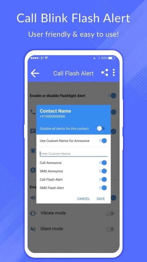 - Flashlight blinking alert on call, flash alerts second for all your incoming calls.