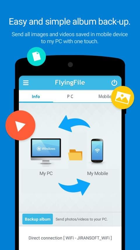 ◆ FlyingFile supports the easiest and fastest file transfer between all devices.