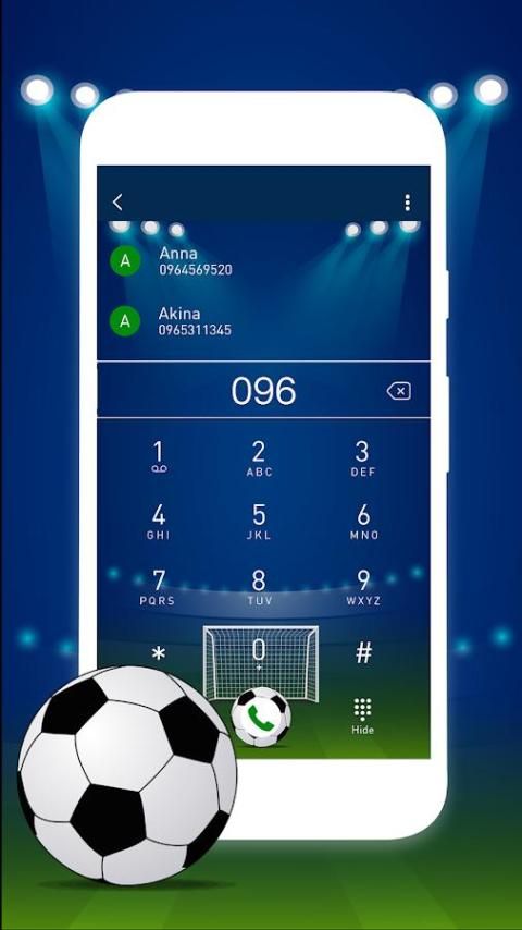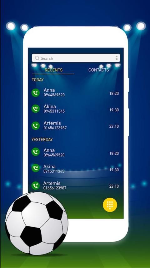 खोज और इस फुटबॉल विषय संपर्क में नए संपर्क डायलर और कॉलर आईडी जोड़ने