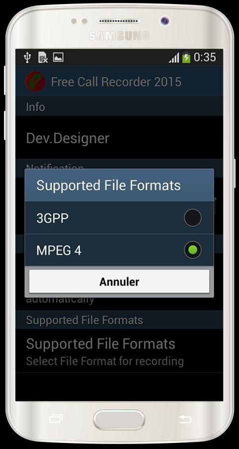 ✔ Confirmation dialog: you want to keep the recorded call, which appear after the call.