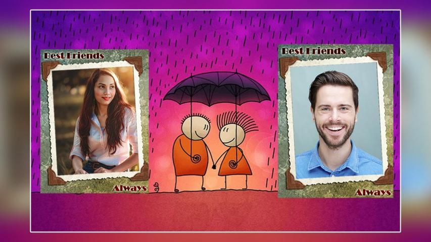 There is a huge collection of Friendship dual photo frames, that will make you feel like you are in the beautiful Friendship. The Friendship Photo Frame app is making of your photo with many Friendship frames.
