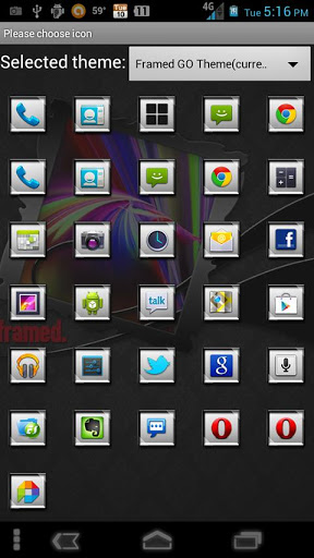 Framed for GO Launcher EX by ADDesignsPLEASE READ IMPORTANT INFO BEFORE YOU DOWNLOAD This app is a Theme designed specifically for the home replacement application, GO Launcher EX.If you do not have GO Launcher EX installed on your device, then be sure to do a search in the Play Store and install it first.How to Apply the Theme These instructions assume you already have GO Launcher EX installed on your device amp; that you have it set as your default 39;Home39;:1. Once your download of this Theme is complete, please DO NOT attempt open it immediately or directly Simply select 39;Done39; when the app finishes installing to your device, and navigate back to your main home screen.2. Press your device39;s main 39;Menu39; button to access the GO Launcher menu. From there,select: 39;Themes39; to access 39;MyThemes39;.3. Scroll horizontally to locate the theme quot;Framed GO Themequot;, select and press 39;Apply39;.Your icons should automatically change once the theme is applied with GO Launcher EX. Some devices may not change the icons automatically. If this happens, follow this additional step:1. Select and hold an app icon located on your home desk screens.2. Select 39;Replace39; gt; Theme39;s icons.The clock widget in text that is shown in screen shot is a custom skin used with the 39;Beautiful Widgets39; app. This widget app and can be found in the Android market.I39;ve been getting requests to do themes for GO Launcher EX for a few months now, but I have not have been able to really create anything new due to time restrictions and my primary focus being towards other projects I39;ve committed to.That said, I39;m happy to announce the release of this new theme, FRAMED for GO Launcher EX, which was created particularly for for all the GO fanatics who39;ve been waiting patiently to for me to create versions of my current themes for them If you are an ADW Launcher EX user, then you can head over to my FRAMED theme for ADW: http:goo.gli2Qot Please email issues, questions, requests, etc. I39;m here to help : and I cannot answer questions on comments below.Thank you for your ongoing support of my work