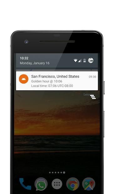 - Set up notifications for upcoming sunrises, sunsets or golden hours