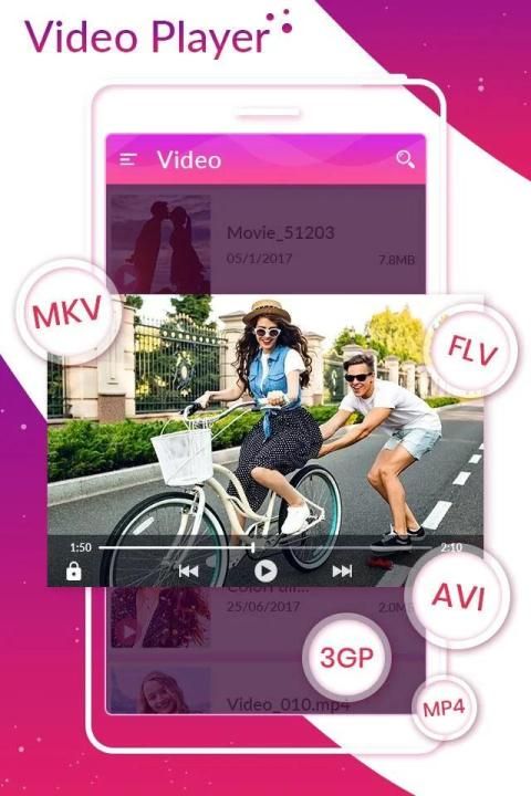 वीडियो प्लेयर आपको बेहतर गुणवत्ता वाले वीडियो का आनंद लेने की सुविधा देता है। AVI, 3GP, MKV, TS, MPG, M4V, MOV, MP4, WMV, RMVB, FLV सहित सभी प्रकार के लोकप्रिय वीडियो प्रारूपों का समर्थन करता है। HD वीडियो प्लेयर ध्वनि, वीडियो, नियंत्रण, प्लेबैक, और रिकॉर्ड, स्रोत या किसी भी विशेषता से संबंधित कोई परिवेदना नहीं है जिसका आप हिसाब लगा रहे हैं। अपने एसडी कार्ड और फोन से वीडियो को व्यवस्थित और चलाएं।