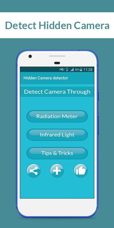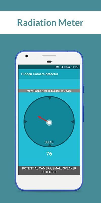 छिपा कैमरा डिटेक्टर एप्लिकेशन जासूस कैम और उपकरणों इसके विकिरण जो उपकरणों से उत्सर्जन करता है का पता लगाने का पता लगाने के चुंबकीय सेंसर का उपयोग जब यह इस तरह के उपकरणों यह गोमांस ध्वनि शुरू करने और भी विकिरण मीटर के मूल्य में वृद्धि होगी के विकिरण का पता लगाने।