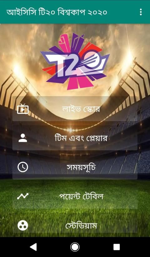 This App for International T20 World Cup Cricket.This mobile app provides everything you need to know about the world of men T20 World Cup cricket including live score, fixtures, results, team & player list, point table and stadium's information.This app provides all the information that you would require to follow men T20 world cup 2020 Cricket tournament.This app is just made for you all Cricket fans, if you wish any improvement in our app, or want to any features to be added in coming updates. Then let us know by giving your suggestion.